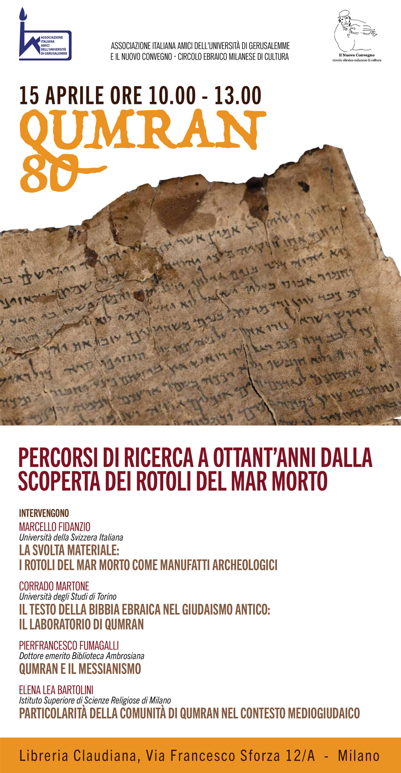 organizzato da Associazione Italiana Amici dell’Università di Gerusalemme Il Nuovo Convegno – Circolo ebraico milanese di cultura presso Libreria Claudiana, Milano mercoledì 15 aprile 2026, dalle 10.00 alle 13.00 l’evento si svolge in presenza Intervengono:...
